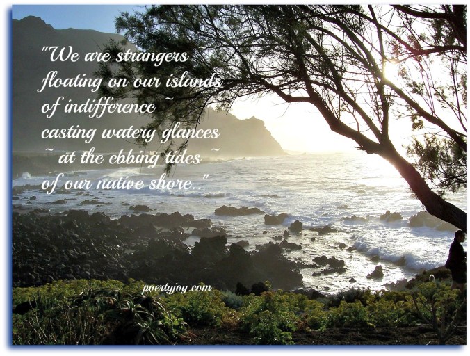 Though I am coming in to this a bit late, my aim is to present a daily poetic piece for you to enjoy here over the next 31 days.