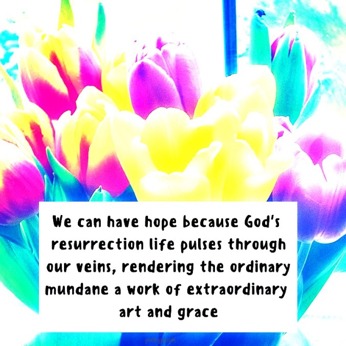 We can have hope because God’s resurrection life pulses through our veins, rendering the ordinary mundane a work of extraordinary art and grace. Will you join me in deliberately looking for signs of resurrection life within and without and focusing on what is most alive in us in this season?