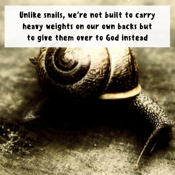 How do we cope with our thready lives, ragged edges, chewed up days and lost energy? If you’re anything like me, you might try pressing on regardless for a while. Though, unlike snails, we’re not built to carry heavy weights on our own backs but to give them over to God instead.