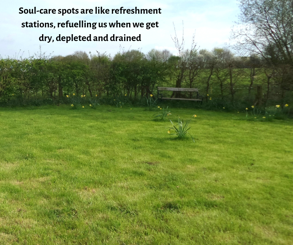 opportunity - quote - Soul-care spots are like refreshment stations, refuelling us when we get dry, depleted and drained - garden - bench (C) joylenton @poetryjoy.com