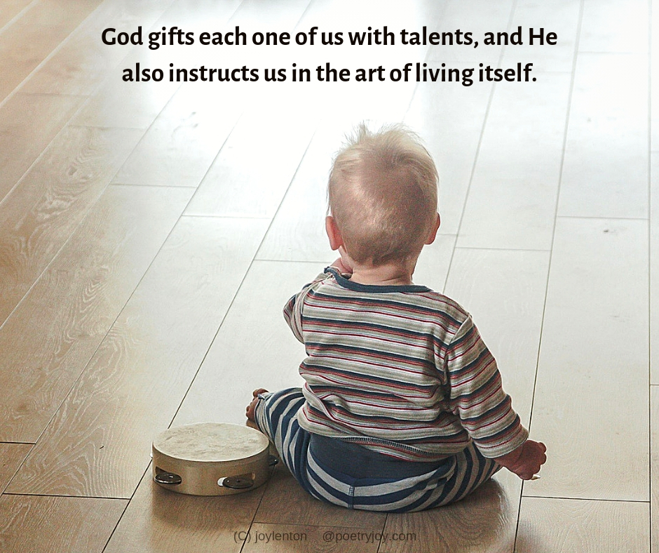 practice – baby with tambourine – God gifts each one of us with talents quote (C) joylenton @poetryjoy.com