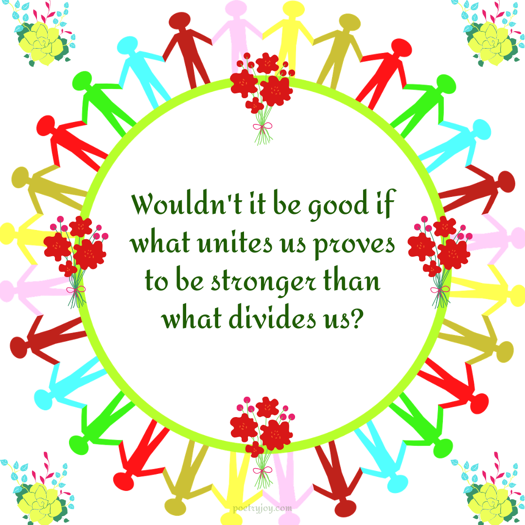 connection – Wouldn’t it be good if what unites us proves to be stronger than what divides us quote (C) joylenton @poetryjoy.com