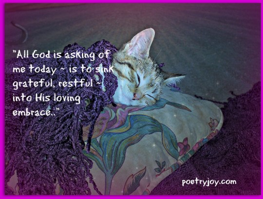 life swims past it’s lost in a brain-fogged blur a cinema reel screening inactivity in a life lived with M.E I feel worthless but God draws near, whispers hope to my heart we’re not judged on our worth it’s decided at the Cross what matters most is how we live and we love how we yield to God surrendering our hearts and giving help to others for you and me our soul's productivity will be evident measured by increments and how our life is spent © joylenton
