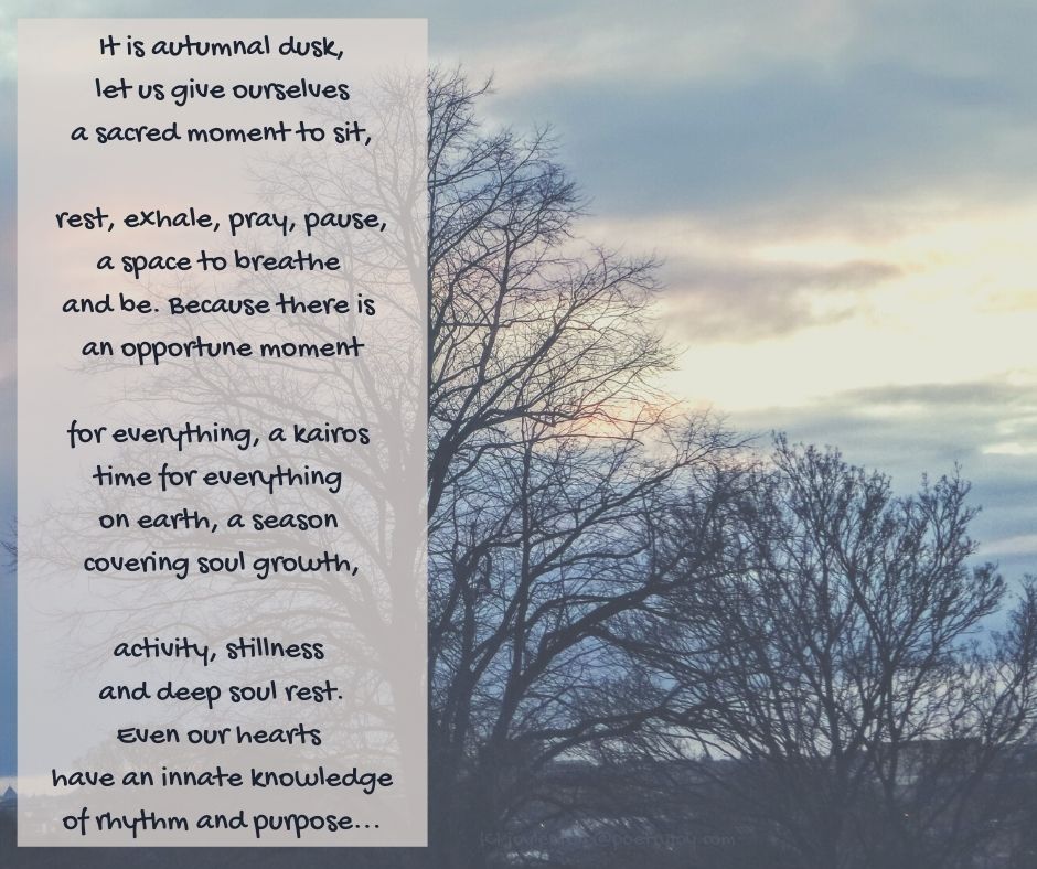 Can you feel the tug, or is it just me? Can you sense the added pressure in this season when we’re unable to stay on top of our tasks? The urgent vies for our attention with the important because there’s just so much to do, and so little time left to do it in. We want to drop everything and go lie down in bed. Perhaps our weary bodies and anxious minds are telling us something valid we need to listen to.